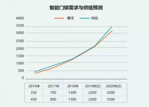 2016年以来,随着中国智能门锁零售市场的正式爆发,智能锁市场进入快速发展时期。资料显示,2017年中国智能锁行业整体销量超过700万套,到2018年,仅上半年全国智能锁行业的整体销量就超过了830万套,增长势头明显。预计2020年,中国智能门锁销量将突破3500万套,智能门锁在国内的市场风口即将来临,市场将进入井喷期。