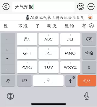 新功能持续上线,搜狗AI技术加速落地搜狗输入法一直以产品创新和用户体验著称。事实上,搜狗输入法智能汪仔此前的“天气推荐”功能,就可以在用户聊天时智能推荐天气情况。而此次搜狗输入法智能汪仔上线“AI气象主播”新功能,正是对“天气推荐”功能体验的优化提升。