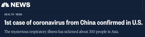 不仅如此,连在大洋彼岸的美国也发现了境内第一例新型冠状病毒感染的肺炎病例。