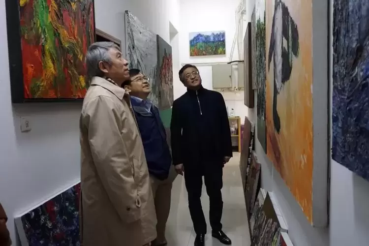 签约仪式完成后,肖京博士、韩宝强教授在周思源书记和川音领导班子的陪同下,参观了画室。