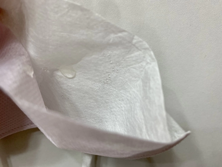 也就是说,只要口罩带有质量较高、直径较细的熔喷布,便很大程度上能够有效将飞沫挡在这层之外,不渗入口罩内层接触人体皮肤和口鼻。