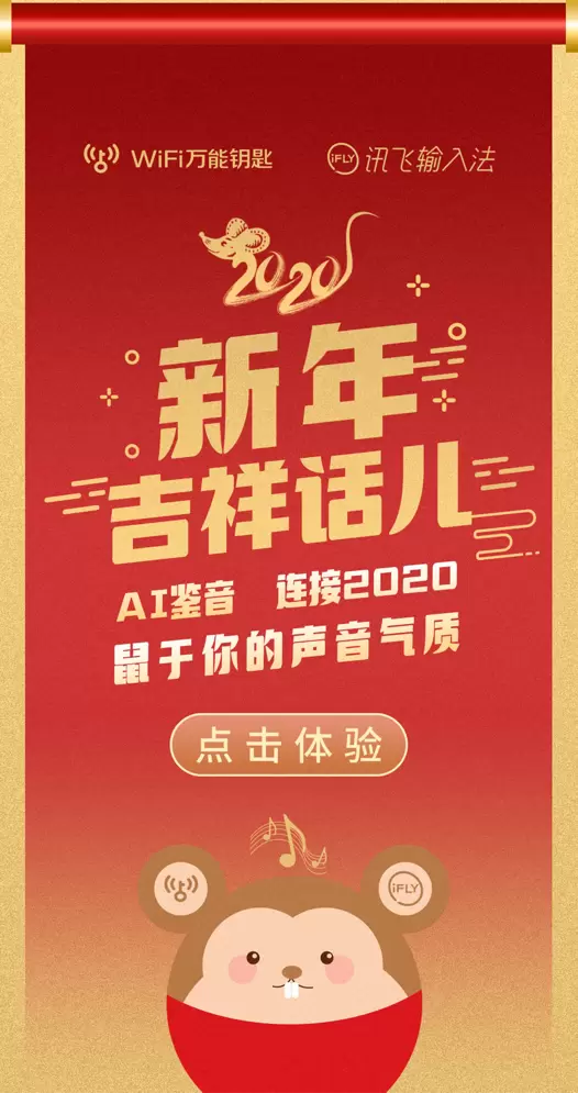 鼠年即将拉开新篇章,手机用户只要下载讯飞输入法客户端,或者在WiFi万能钥匙及讯飞输入法的官微,就能找到这一趣味性活动入口。点击多个入口识别二维码可进入的页面,念出指定的新年祝福吉祥话,页面会对声音进行识别,进而分析,给出相应的声音气质,测出“鼠”于你的个性标签。
