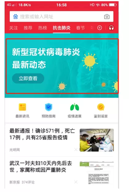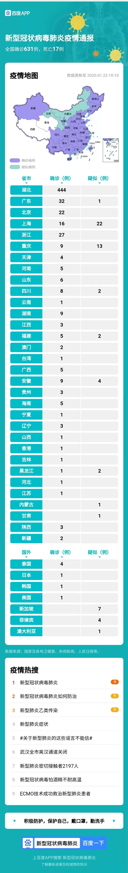 在百度App的“抗击肺炎”专题中,“疫情地图”被放在最显眼的位置,打开后我们可以看到疫情在地图上的覆盖以及各省市详细数据,实时更新的动态数据让我们对于疫情有直观了解。并且,这份“疫情地图”是百度App和百科医典联合制作,根据权威发布消息进行更新,数据来源为国家及各地卫健委员、央视新闻和人民日报等,保证了数据的权威性和全面性。