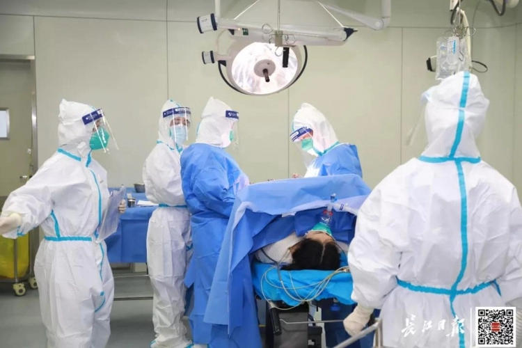 24日下午4点,协和产科第四党支部书记赵茵和麻醉科第一党支部书记武宙阳得知消息后,赶往武汉红十字会医院。晚上6点55分到7点50分,赵茵、武宙阳在武汉红十字会医院麻醉科主任罗会林,手术室护士长肖文芳,妇产科护士长陈艳,董明慧,及毕颖医生通力合作下,为晓艳行剖腹产手术。