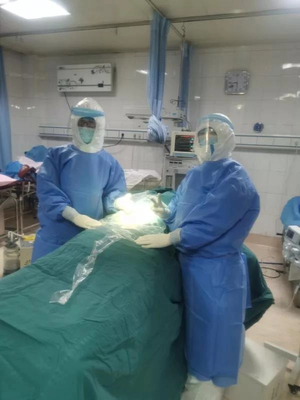 科室相关医护人员启动传染病一级防护措施,确保尽快进行剖腹产手术。