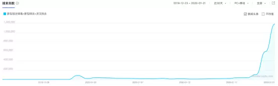 人们对于肺炎事件的关注度也在显著提升。据百度指数显示,1月21日“新型冠状病毒、新型肺炎、武汉肺炎”三大关键词搜索指数较之前日均值上涨近100倍!