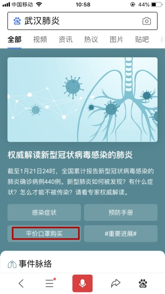 武汉肺炎引发口罩大面积断货 百度上线平价口罩购买入口