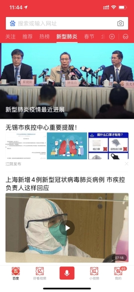 另外,百度APP首页还上线了“新型肺炎”频道,集纳了关于武汉肺炎的各类一手信息。同时,用户在搜索“武汉肺炎”、“新型冠状病毒”等关键词后,也可以进入到专题聚合页中,疫情的最新进展、专家的权威解读、多方的热议报道等信息一目了然。