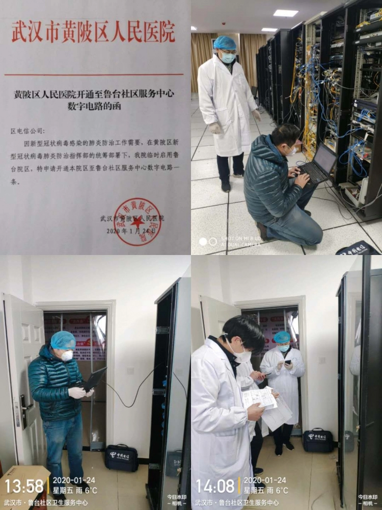 应东西湖区经信局需求,武汉电信于当天下午3点前为东西湖区人民医院和东西湖区径河卫生院紧急开通一条电路;