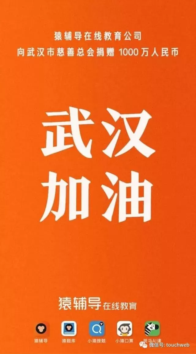 今日,光谷第二总部企业猿辅导宣布向武汉市慈善总会捐款1000万,协助当地肺炎防控。