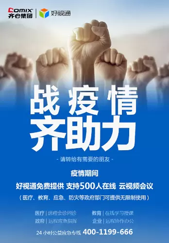 为了支持国家少聚会、少扎堆的倡导,好视通云视频会议发挥产品价值及履行社会责任,在疫情期间将免费提供500人在线云视频会议,让大家能够高效在家办公,希望帮助相关部门及万千企业度过防疫关键时期。