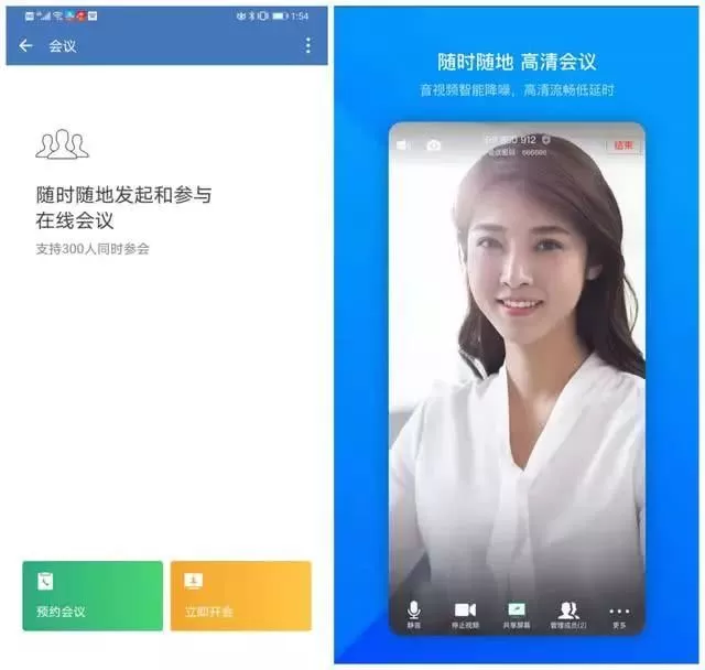 除了企业微信外,钉钉也将视频会议能力从102方接入,升级为302方,同样也是免费提供。