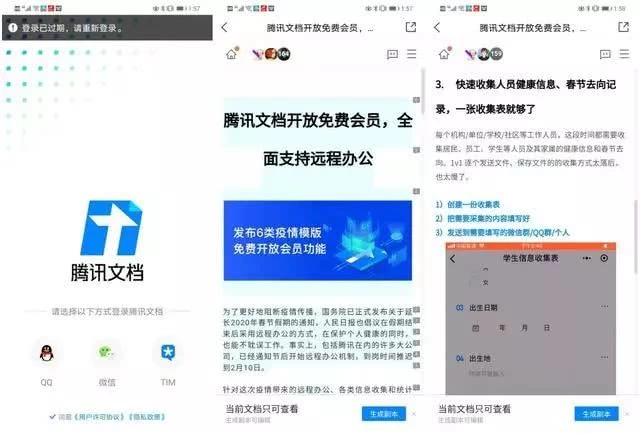 它们都支持在线共享、编辑、下载到本地等功能,主要区别在于腾讯文档支持微信、QQ扫码一键登录,支持在微信小程序里查看、编辑,更便捷易用一些。