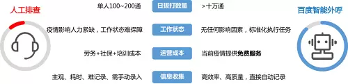 百度承诺:从2020年1月28日到疫情结束,不收取任何费用,向各级政府、卫健委机构、基层社区、疾控中心等相关疫情防控机构开放智能外呼平台。