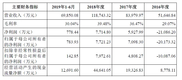 招股书显示,公司2019年上半年的净利润增长趋势出现同比放缓。2016-2019 年1-6 月,公司净利润分别为-21,086.20 万元、5,927.99 万元、7,714.80 万元和778.44 万元。造成增长放缓的直接原因为以下两点: