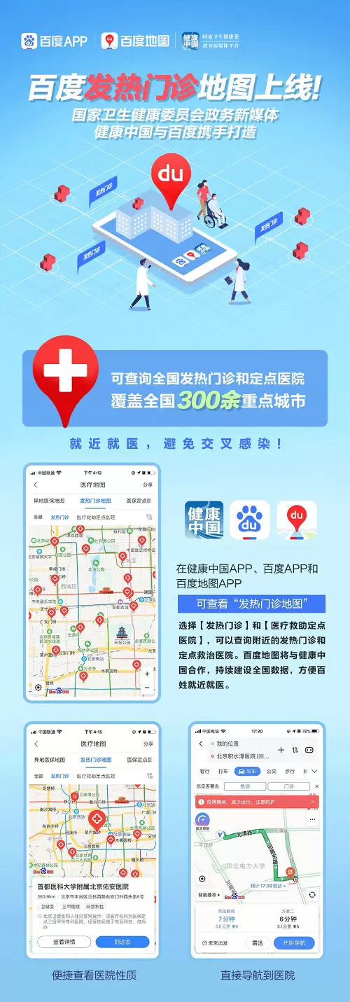 百度地图“发热门诊地图”全国300余重点城市已上线,“出行管控消息”实时更新中