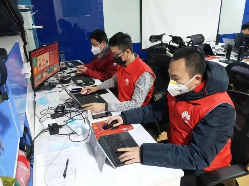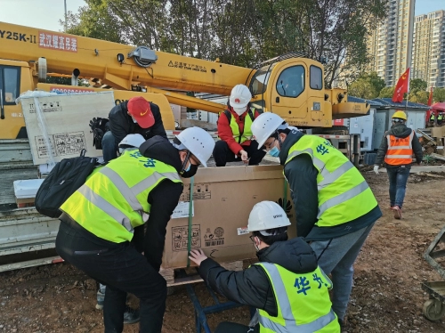 1月31日下午,华为网络、视频会议等设备紧急运输进场,准备施工调测