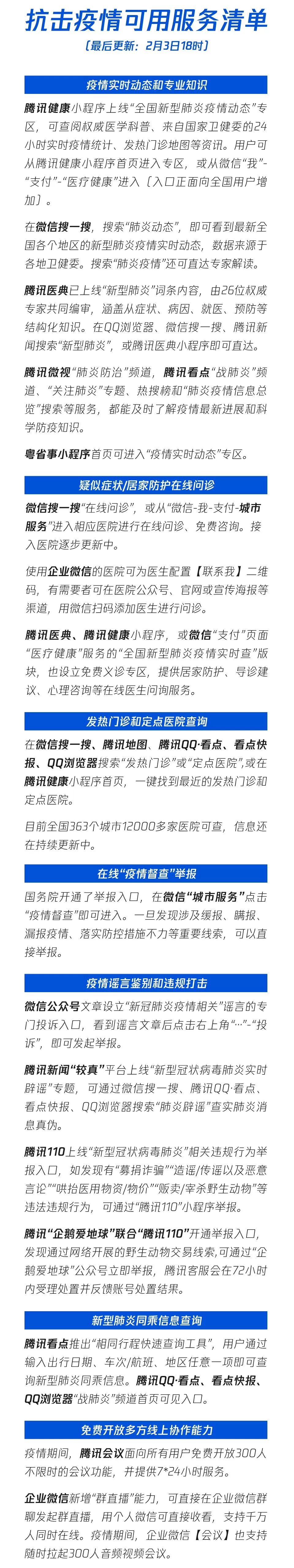 附:最新版腾讯抗击疫情可用服务清单