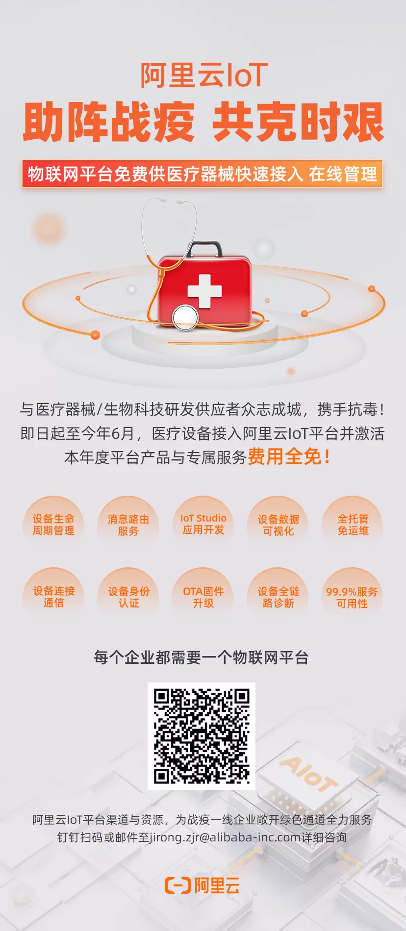 全民抗疫,众志成城。2月3日,阿里云对外宣布,为了支援抗疫,同时支持前线智慧医疗,目前已经对全球医疗检测类设备免费开放了接入物联网平台的能力。
