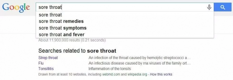 比如针对流感搜索词,给出相关寻求流感治疗的list,2012年后还提供相关诊断术语的推荐。研究人员分析,这些调整有可能人为推高了一些搜索,并导致谷歌对流行发病率的高估。举例来说,当用户搜索“喉咙痛”,谷歌会在推荐关键词给出“喉咙痛和发烧”、“如何治疗喉咙痛”等推荐,这时用户可能会出于好奇等原因进行点击,造成用户使用的关键词并非用户本意的现象,从而影响GFT搜集数据的准确性。