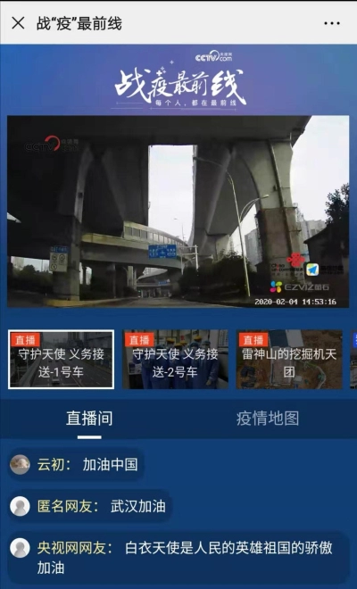 中国联通与央视网、高德打车平台合作,第一时间为志愿车队中的两辆专车提供了直播服务,让更多人看到医护人员与志愿者团队的大爱与坚守。