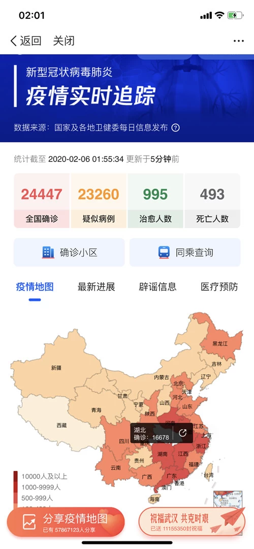 其次,当疫情从武汉扩散至全国时,人们更加关注疫情发展形势。目前很多媒体平台都能看到新型冠状病毒感染的肺炎疫情分布系统,动态更新和展示疫情在全国的变动情况。点击系统界面地图中的每个省份,可以显示各省确诊、疑似、死亡的新增及累计数据详情,慢慢的能精确到小区。这样,用户就能获得更多准确有效信息,加强自身保护。