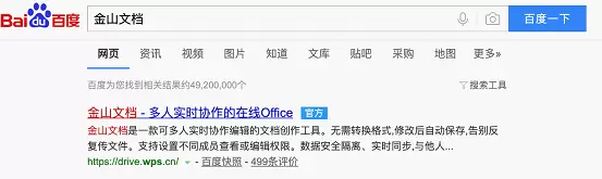 此外,您还可以百度搜索金山文档,第一个搜索结果,打开【金山文档】,点击免费使用即可。