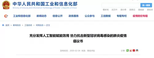 工信部科技司2月4日发布《充分发挥人工智能赋能效用 协力抗击新型冠状病毒感染的肺炎疫情》倡议书。倡议进一步发挥人工智能赋能效用,组织科研和生产力量,把加快有效支撑疫情防控的相关产品攻关和应用作为优先工作。