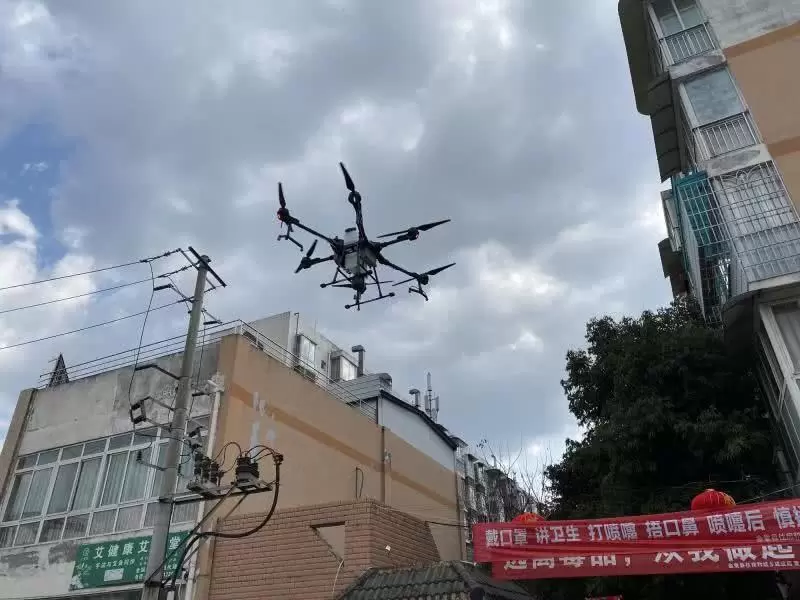 当前,新型冠状病毒感染的肺炎疫情防控工作正处于关键时期,社区防控至关重要。为了提高效率、确保安全,2月6日成都金堂县农业农村局农经站对接成都市喜田农业技术服务专业合作社,联合成都田田圈年丰公司和金堂县社会工作者协会采用无人机喷洒消毒液的方式防控疫情。
