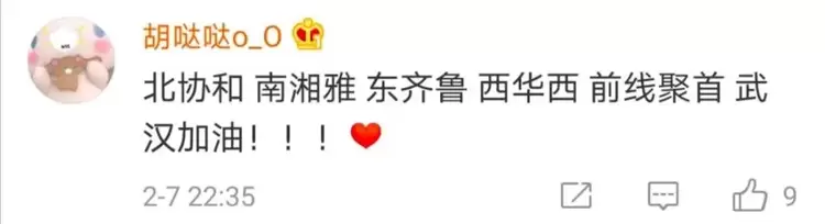 有网友表示,北协和、南湘雅、东齐鲁、西华西,中国医疗界最顶尖的王炸带上各省份的天团会师武汉!今天看到最戳心的一句话是:全村的龙已把最硬的麟给你,哪怕自己也伤痕累累,所以,武汉,加油!