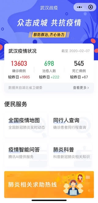 查看床位、了解疫情最新情况,腾讯云助力“武汉战疫”小程序上线