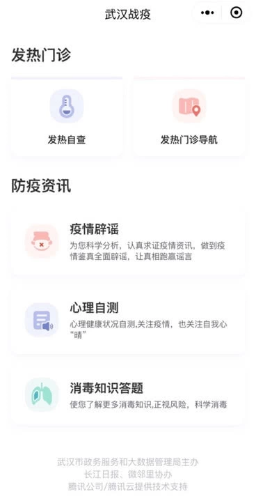 当前武汉形势严峻,通过小程序这一轻量化的平台,能够将疫情相关权威信息及时传递,推进防疫信息宣传到位。同时,也让武汉市民产生疫情相关疑问或身体出现问题时,有了能做出解答、提供帮助的产品。