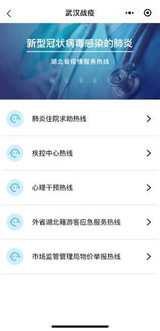 同时,小程序还提供了肺炎住院求助热线、疾控中心热线、心理干预热线、游客应急服务及市场监督管理局物价举报热线,让市民身心健康出现问题时有明确的沟通渠道。
