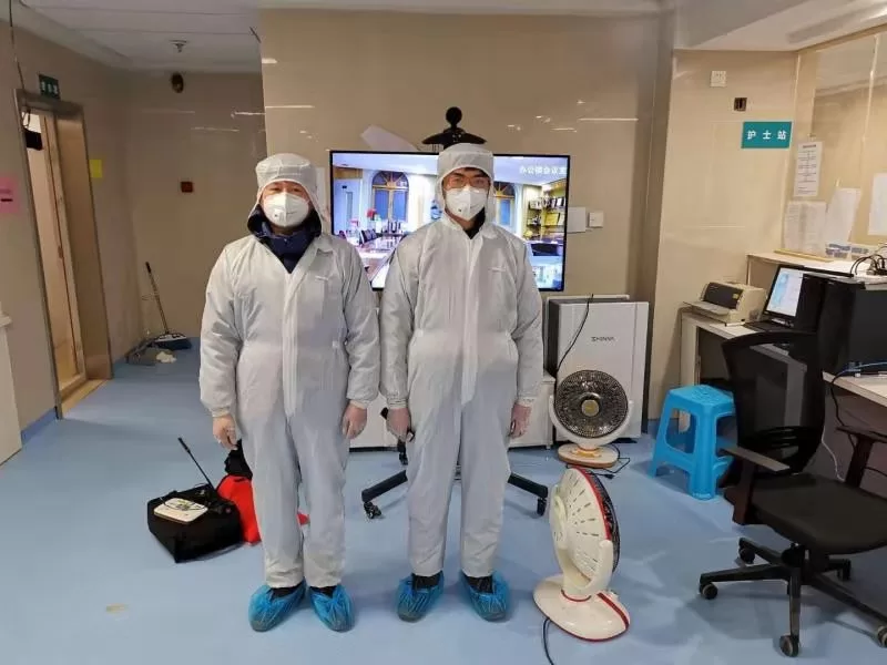 技术人员全身防护顺利完成开通云视讯