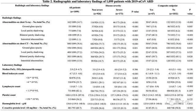 与非严重病例相比,严重病例具有更显着的数据异常,即白细胞减少,淋巴细胞减少,血小板减少,C反应蛋白水平升高(所有P值均小于0.05)。
