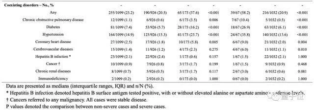 此外,与非严重病例相比,重症病例中任何潜在的疾病明显更为常见(38.2% vs. 22.5%, P