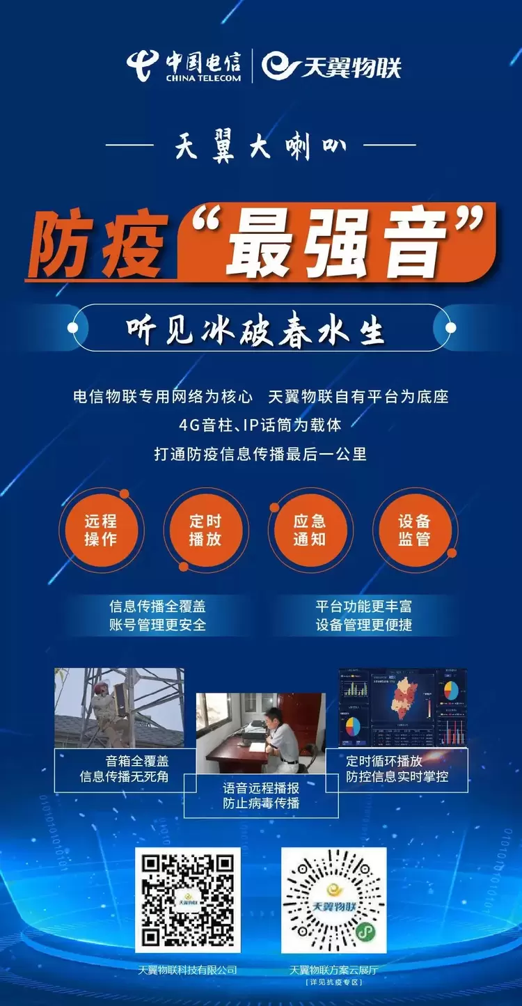 目前,天翼大喇叭已在甘肃、福建、内蒙古、江苏等地成功应用,提升了乡镇地区疫情防控的力度。