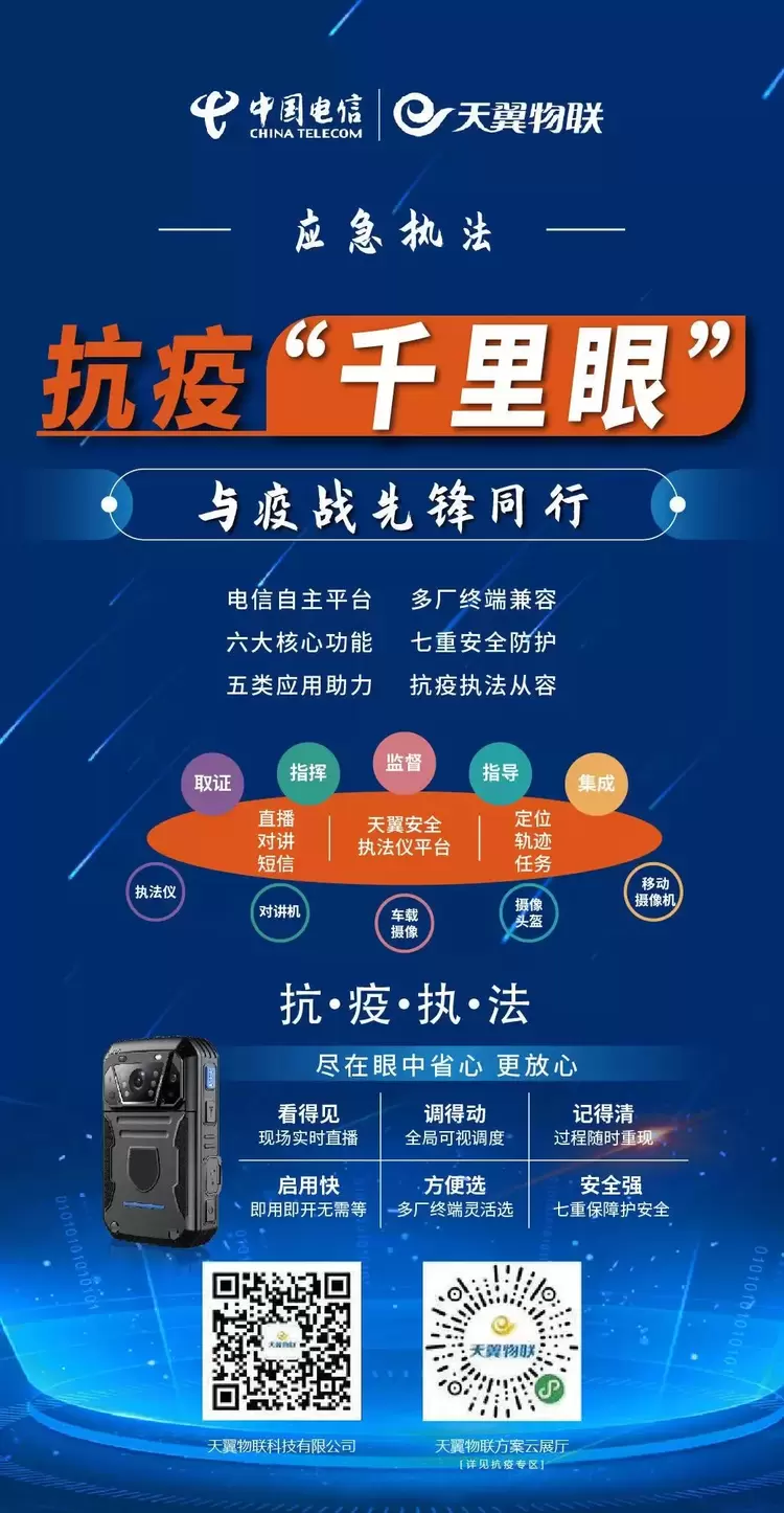 当下正处于返程高峰期,如何确保返程安全?天翼物联应急执法仪成为抗疫“千里眼”,与应急执法团队冲锋在抗疫的最前线。中国电信天翼物联应急执法解决方案基于物联专网、4G网络,采用自主研发的应急执法记录仪管理平台,向下兼容多型号执法仪终端,向上为行业应用提供统一的API接口,通过执法记录仪实现语音对讲、图文短信、实时视频、轨迹定位、可视调度、任务管理等功能,助力实现更便捷、更从容的抗疫执法。