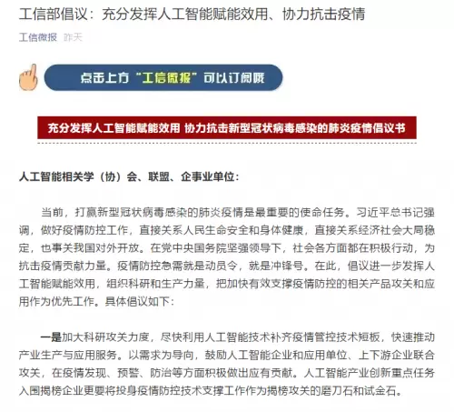 2月4日,工信部发布倡议《工信部倡议:充分发挥人工智能赋能效用、协力抗击疫情》,号召人工智能企业在防疫工作群策群力,提升技术防控的可靠性与实用性。此前,中关村科学城管委会也曾面向北京市海淀区企业和科研团体征集与“红外测温产品”有关的人工智能技术方案,提高以“大规模人群”为基础的测温精度,并于2月6日中午公示了目前已提供可行方案的名单,包括旷视基于人工智能平台 Brain++集成的“人体识别+人像识别+红外/可见光双传感系统”、 北京千方科技公司的2米探测距离的非接触式红外视频检测设备等。