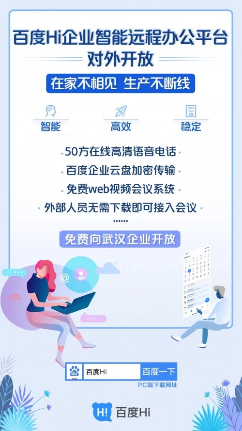 百度Hi企业智能远程办公平台正式开放 24小时不间断支持远程办公