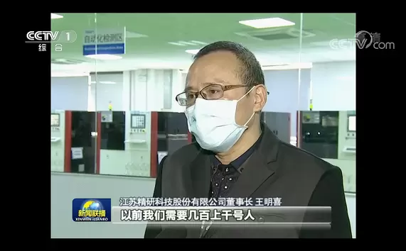 (2月10日,央视《新闻联播》报道,精研科技董事长王明喜称百度智能质检系统提升了质检效率)