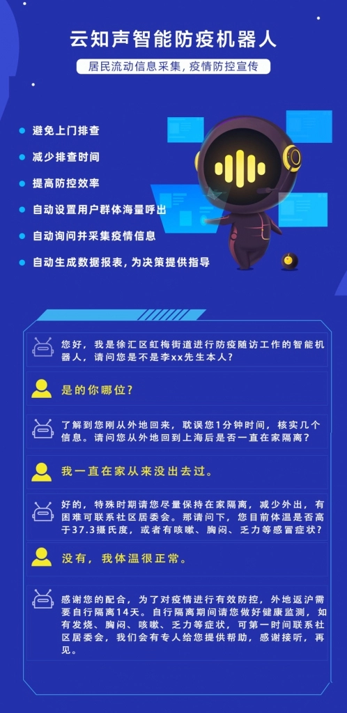 云知声推出“疫情防控机器人”,已在上海徐汇区虹梅街道试点上线