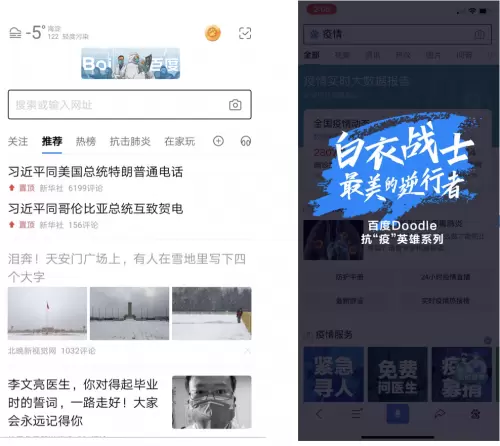 百度上线抗疫英雄系列Doodle 致敬白衣天使、志愿者等群体