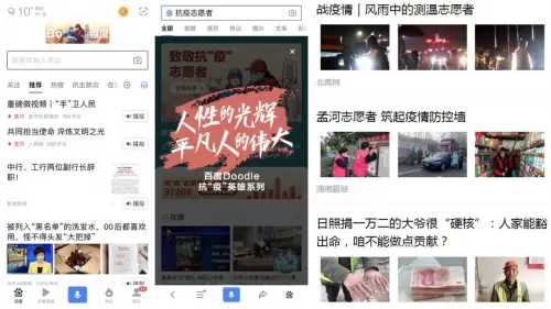 在百度首页点击Doodle图片,即进入到“致敬抗‘疫’志愿者”专题,专题整合了疫情期间全国各地涌现出的志愿者抗击疫情的英勇事迹,向人们传递志愿者在各个岗位上默默奉献的爱与温暖。一位匿名捐赠25万只口罩的97年小伙表示:“我不需要采访,疫情早点过去就好。”还有在风雨中坚守在各省市县区基层的志愿者,他们坚持每天对过往人员进行测温、排查,为居民讲解消毒、防护知识,甚至还有人充当起了隔离住户的“采购员”……