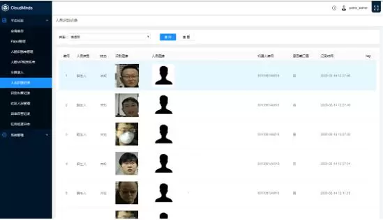 基于先进的人工智能算法,云端智能机器人可以在大型公共场所下检测海量人脸,并将佩戴口罩和未佩戴口罩的人脸快速识别标注,实现无感的口罩佩戴检测。云端智能机器人在识别到未佩戴口罩的人员时,可自动发出警报,向工作人员及时反馈,并语音提醒相关人员及时佩戴口罩。