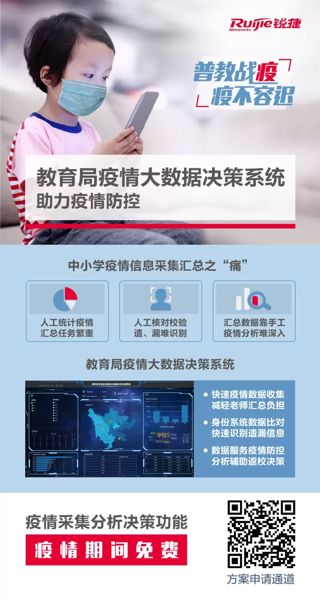 深耕教育行业20余年的锐捷网络,第一时间深入调研全国中小学在疫情统计中的困难,推出满足普教用户实际需求的疫情大数据决策方案。
