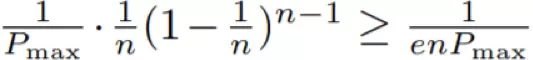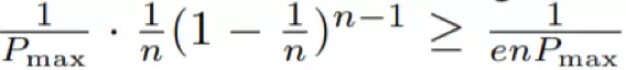 的概率生成,其中 1/P_max 是从解群选出 0^n 的概率的下界,是在保持其它位不变的同时翻转 0^n 的特定比特的概率。因此,生成 x' 的预期迭代次数至多为 enP_max。注意,根据式 (6) 和 (7),。如果 x' 包含在 P 中,则有 J_max ≥ 1;否则,bin(1) 中必然存在一个 g 值更大的解,这意味着 J_max ≥ 1。