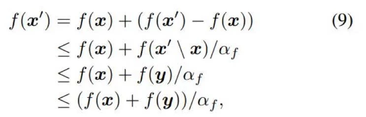 定义 2 所代表的总曲率描述了单调子模函数 f 与模块度(modularity)的相近程度。很容易验证 1 ≥ 1 – κ_f ≥ 0。在这篇论文中,研究者用κ_f 表示广义 单调函数。根据式(2),如果没有子模性,则 1/α_f ≥ 1 – κ_f ≥ 0 成立。