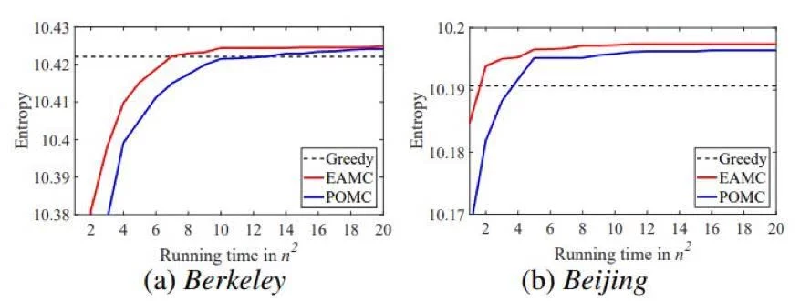 图 3:有路径限制的传感器放置。熵:越大越好。