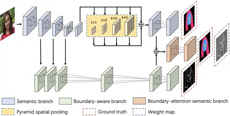 近年来,人脸解析因其潜在的应用价值而受到了越来越多的关注。论文《A New Dataset and Boundary-Attention Semantic Segmentation for Face Parsing》从人脸解析领域存在的问题出发,在数据和算法两个方面做出了贡献。首先,论文提出了一种高效的像素级的人脸解析数据标注框架,该框架极大的降低了数据的标注难度,使他们在短时间内构建了一个大规模的人脸解析数据集(LaPa)。该数据集包含了超过22,000张人脸图片,且覆盖了多种姿态、光照和表情变化。同时,本文还提出了一种有效的边界注意力的语义分割方法(BASS),该方法从网络结构和损失函数两方面着手,充分利用图像的边界信息来提升语义分割精度,论文中设计了大量的实验来验证该方法的有效性,同时该方法取得了公开数据集Helen上SOTA的性能。